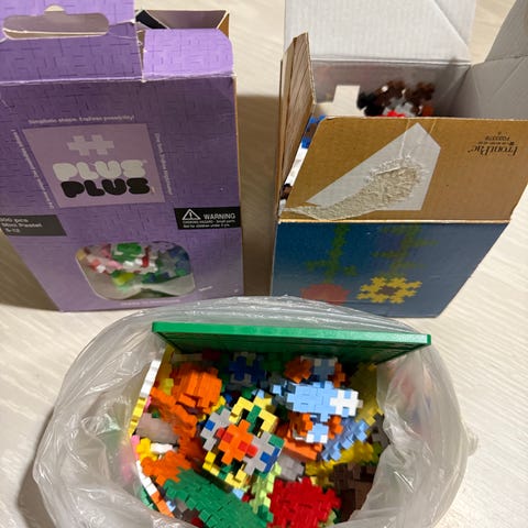 Plus plus rakennuspalikat, Neon. Pakkauksessa maininta 520 pcs. Jokunen voi olla kadonnut, kaikki värit eivät ole olleet leikeissä mukana. Ei voida lähettää tuossa putkilossa.