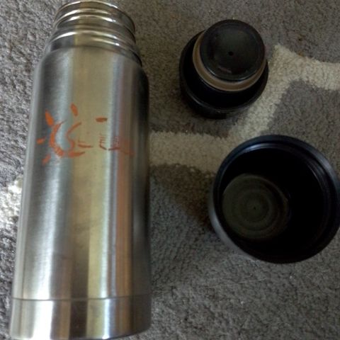Terästermoskaadin 1.4 vetoisuus 1.4 litraa. Lidlistä ostettu. Hyvin pitää ja kauan kuumana veden!