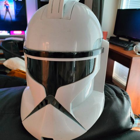 Star Wars Clone Trooper kypärä valkoisella värillä. Kypärä on muovista valmistettu ja sisältää sisäiset kiinnityshihnat. Sopii roolipelaamiseen tai keräilyyn.