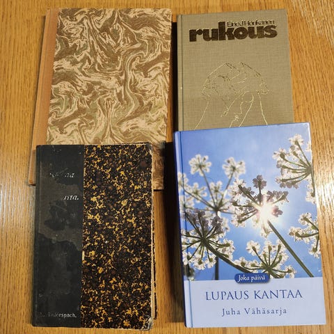 Myyn kuvan kirjat, kansissa on jo kulumisen merkkejä ja sivuilla voi olla jtk merkintöjä paikoin. Nouto Muhos tai Oulu sovitusti. Lähetys.