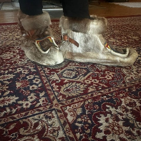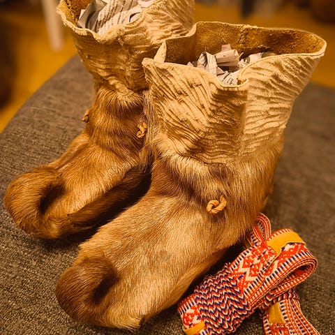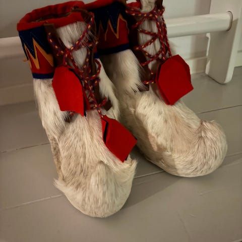 Hyväkuntoiset nutukkaat, pohjallisen koko n.22cm. Nämä olleet parina talvena muutamat kerrat käytössä. Inarilaisen käsityöläisen tekemät. Lämpimässä säilytetty.