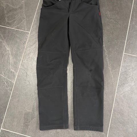 Reiman softshell-housut 140 cm, Kapea malli. Polvien kohdalla pehmentymää, mutta kangas ehjä ja yleisvaikutelma oikein siisti.