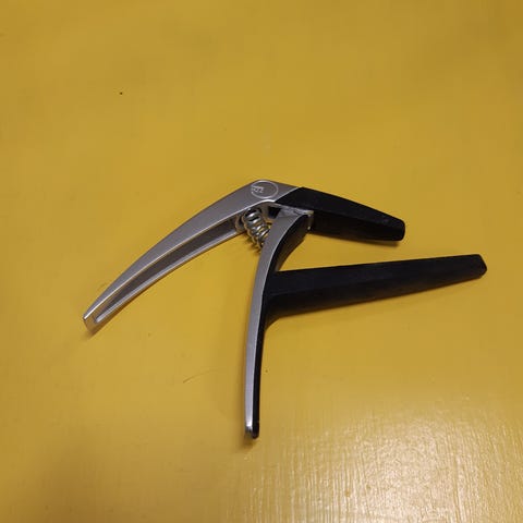 Capo kitaratarvike, musta väri. Sopii kitaran kielen korkeuden muuttamiseen nopeasti ja helposti.