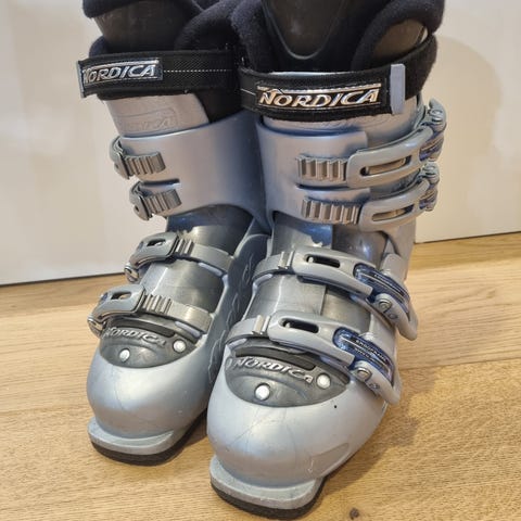 Monon ulkomitta 295mm ja 25/25,5 sisämitta joten vastaa noin 39 kengän kokoa, monoissa käytön jälkiä