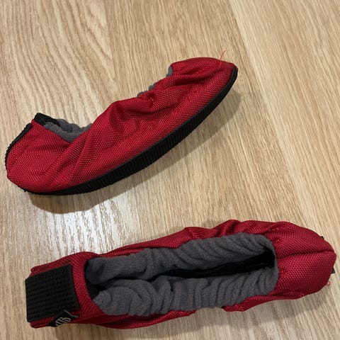 Puiset punaiset suojat jääkiekkoluistimiin. Hinta 5€/pari.
