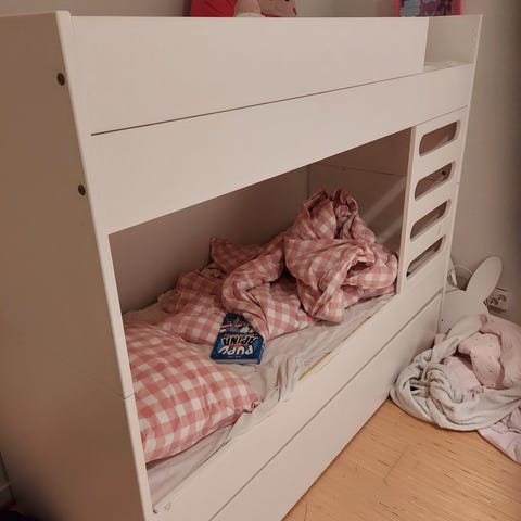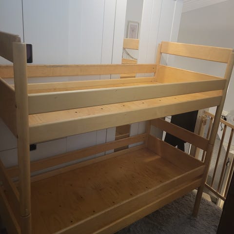 ANNETAAN osiin valmiiksi purettu kuvan kerrossänky. Tikkaat puuttuvat. Nouto ma 5.1 klo 10-16 Helsingin Ruskeasuolta.
