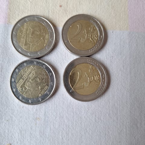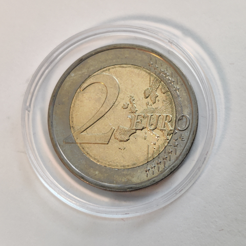 Kahden euron kolikko Helen Schjerfbeckin 150-juhlavuodelta.