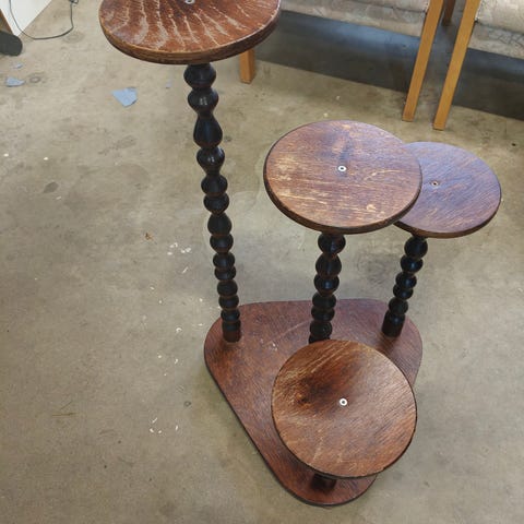 Kätevä,siistikuntoinen kukka allas. Kestää painoa eli isonkin kukan. Myös pienempi pyöreä kukkapöytä myynnissä. Vielä kolmas kukkapöytä tai taso löytyy. VAIN NOPEA NOUTO.