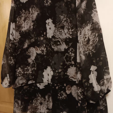 Muutaman kerran käytetty, pesty ehjä tunika. Helmassa rimpsu. Koko 50/52, kai- kai 65 cm, hiha 52 cm, pituus 78 cm. 95% viskoosi, 5% elastaan. Väri on sinisävyinen.