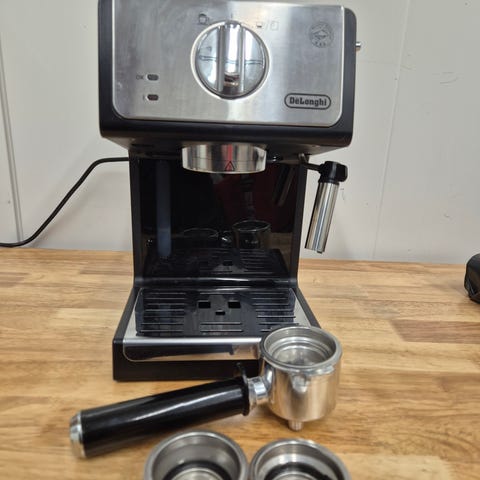 DeLonghi espressokeitin. Laite soveltuu espressokahvin valmistukseen ja sisältää höyryputken maidon vaahdotukseen. Käytetty 4 kertaa, jäänyt tarpeettomaksi
