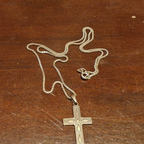 Myydään tyylikäs ja ajaton hopeinen (925) rippiristi ketjulla. Klassinen malli, sopii hyvin sekä arkeen, että juhlaan. Hopealeimat (925) näkyvät kuvissa.