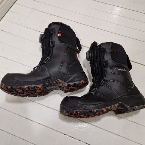 Sievin hyvä laatuiset ja kuntoiset turvasaappaat. Puolivuotta käytössä, hieman vain likaa pinnassa. Tarjoa hintaa