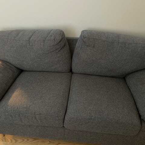 Toisen käsinojan päässä kulumaa, muuten ihan hyvä ja napakka. Helppo nouto omien menojen mukaan. 5.krs. Ei välttämättä mahdu hissiin.