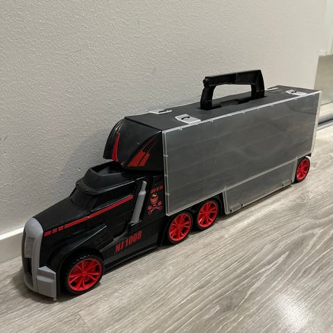 Load your medal playcars on to this truck toy, its like a toy car storage truck