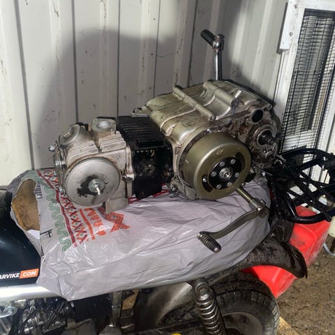 Mukana tulevassa 72cc moottorissa on juuri vaihdetut yläkerran tiivisteet, imu vuodon ja ajoituksen säätämällä pitäisi saada ajoon.