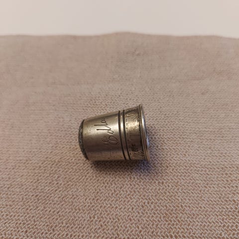 Kaksi sormustinta on perinteisellä kuvioidulla/pitoon tarkoitetulla pinnalla ja yksi on sileä, pelkistetty malli. Sopii ompeluun, keräilyyn tai somisteeksi.