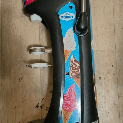 Tää olis meinaan juttu jota kukaan ei oikeasti tarvitse, mutta onhan se nyt hyvä olla olemassa, jos joskus kuitenkin tarvitsee. Whirla Whipin historiahan ulottuu jonnekin melkein sadan vuoden taakse jenkkeihin, tämä ei nyt ihan niitä alkupään koneita kuitenkaan ole ja taitaa muutenkin olla Itävaltalaista tuotantoa. Täysin järjetön laite, mutta lastenkutsuilla tai kesäjuhlissa kieltämättä melkoinen tunnelmanluoja. Tähän laitetaan mitä vaan pingviiniharkkoja, vedetään kahvasta ja nautitaan pehmiksistä. Yllättävää kyllä, se tuote jopa muistuttaa pehmistä etäisesti. Jos olet aina haaveillut oman jäätelökioskin perustamisesta, niin tämän koneen jälkeen sulta puuttuu enää miljoona miinus yksi muuta juttua.