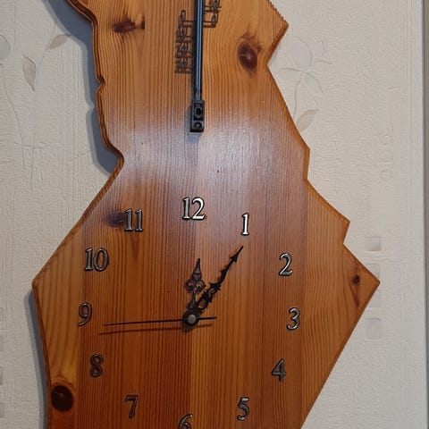 Kuvan kello myynnissä. Kello käy normaalisti pariston ollessa paikallaan. Minuutti viisari on vääntynyt, joten se ei välttämättä liiku ja numerot ovat aikoinaan pudonneet pois kellosta. Vain nouto.