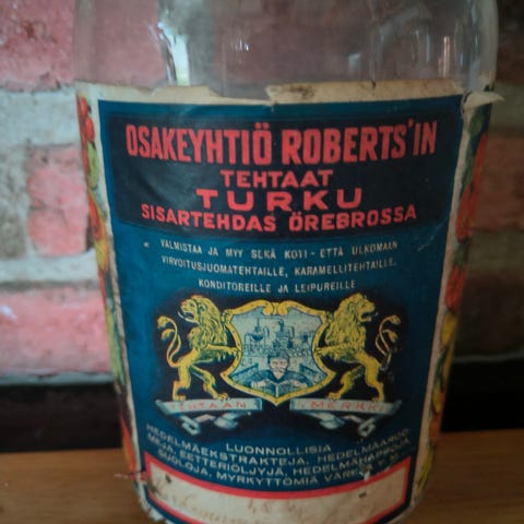 Hakusanoja keräily harvinaisuus karhulan iittala glass bruk keräily etiketit lappeenranta marjamehu vihreä lasi viistehiottu vintage kuriositeetti museo kahvila cafe jugend renesanssi