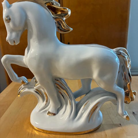 Lomonosovin keramiikkaa. Varsa tai nuori hevonen. Korkeus 20 cm.