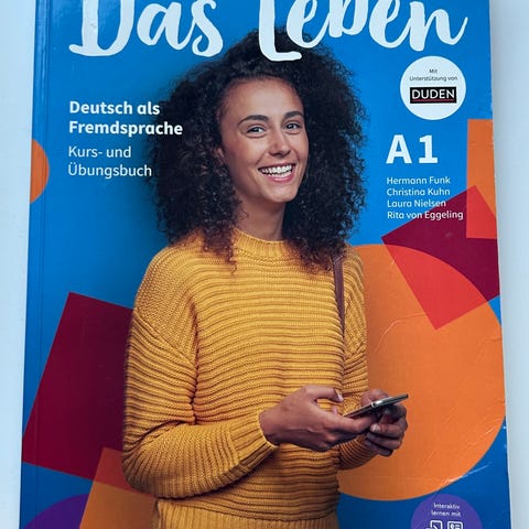Päällystetty ja virheettömässä (ei esim merkintöjä) kunnossa oleva Das Leben A1-kirja jota käytetään esimerkiksi Saksa 1 ja 2 kursseilla.