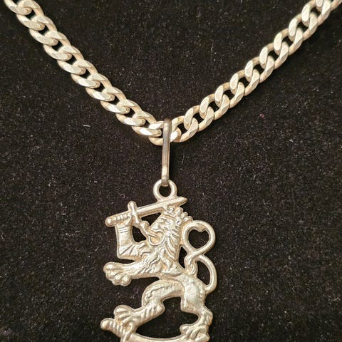 Hopeinen panssariketju 4.1mm leveä suomileijona riious 3.5cm korkea
