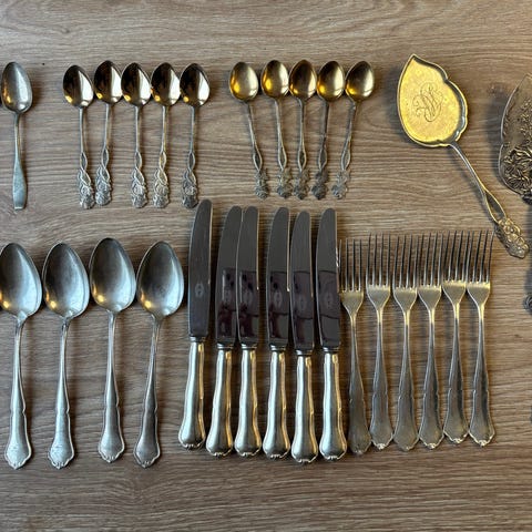 Ruostumattomasta teräksestä valmistettu aterinsetti sisältää erilaisia lusikoita ja haarukoita. Mukana on myös metallinen säilytin, jossa on rei'itetty rakenne ilman kantta. Aterimet soveltuvat yleiseen ruokailukäyttöön.