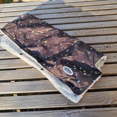 Uusi, käyttämätön musta käden lämmittäjä pussukka rattaiden aisaan.