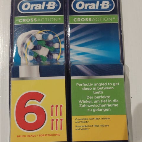 Oral-B Cross Action CleanMaximiser hammasharjan vaihtopäät sisältäen 6 kappaletta. Vaihtopäät on suunniteltu koko suun puhdistukseen ja ne sisältävät CleanMaximiser-harjaspäät, jotka vaihtavat väriä merkiksi kulumisesta. Sopivat Oral-B sähköhammasharjoihin.
