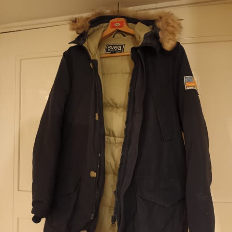 Laadukas punainen Svea Joy talvitakki/toppatakki. Takin hupussa on irroitettava tekoturkis, takissa on vyötärön säätömahdollisuus, yksi povitasku, kaksi tilavaa painonapillista etutaskua, vetoketjulliset rintataskut. Kokomerkintä M, mutta on melko naftia kokoa. Mitta kainalo-kainalo 51 cm, takin pituus takaa 84 cm.