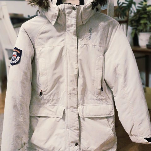 Käytetty, mutta edelleen siistikuntoinen hupullinen naisten parkatakki. Merkki Etirel, koko 38/M, väri musta. Hupussa teddyvuori. Takki vastaa hyvin kokoaan. Vetoketju ja päällä napit. Kevyesti topattu. Täyte paikoin vähän paakkuuntunut, mutta ei kuitenkaan häiritsevästi eikä siten, että takki olisi kylmä tai käyttökelvoton.