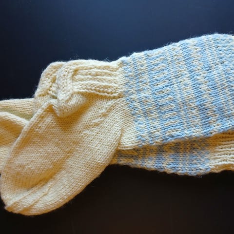 Lämpimin ajatuksin neulotut keltaiset villasukat, kotimaista Seitsemän veljestä -lankaa, 80% villaa, koko 39-40. Hinta 24 e + postimaksu 5,50 e. Lähetän sukat sinulle, voit maksaa tililleni saatuasi ne.