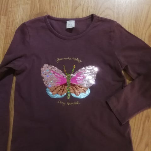 H&M merkkinen kääntöpaljettinen pitkähihainen paita. Kokomerkintä on 104 cm mutta ottaisin käyttöön jo 92/98 cm koossa. Kunnoltaan on erittäin hyvä, ei moitteita. Noutaa voi Turusta Hirvensalosta tai voin postittaa. Samaan postikuluun voi yhdistää myös muuta.