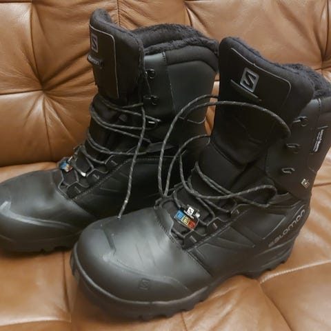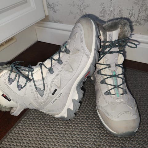 Salomonin talvisaappaat / maiharit koossa 40. Muutama kerta kävelty ja totesin ettei koko ollutkaan hyvä mulle, joten nyt nämä myyntiin. Lihaa pohjissa muuten kuin uudet.