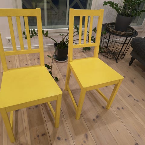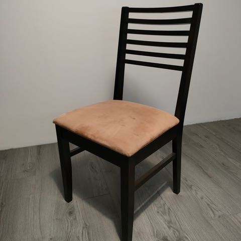 6 kpl puisia tuoleja pehmusteilla. Paketti hinta 60€