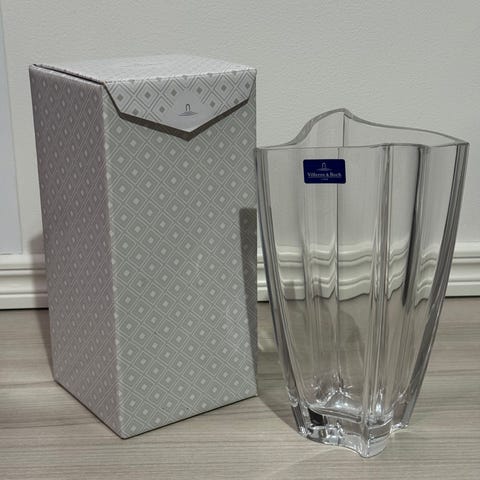Vuosia sitten lahjaksi saatu, mutta käyttämättä jäänyt Villeroyn maljakko. Valmistettu Saksassa.