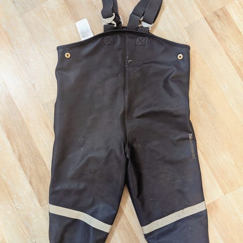 Oikein hyväkuntoiset ja napakkahenkseliset kurahousut. Ennemmin vastaa kokoa 74 kuin 80.