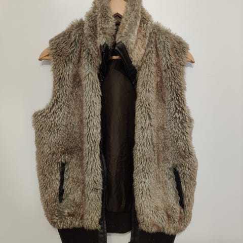Lämmin tekoturkisliivi. S. Musta-ruskea