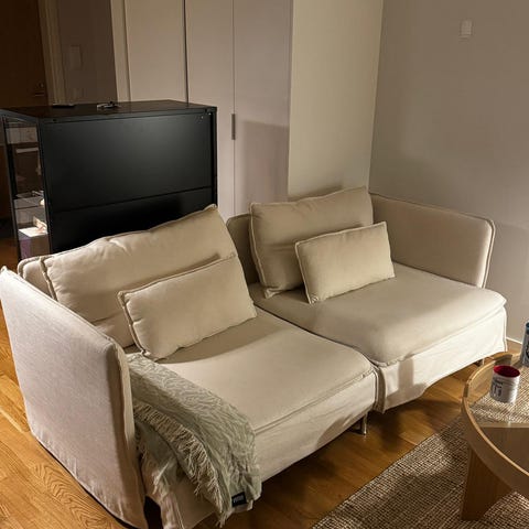 2,5v sitten ostettu Ikea Söderhamn sohva pellavan sävyisellä Gransel-kankaalla. Tosi hyvä kunto, olen pessyt kankaat ennen myyntiä (2 minitahraa vikoissa kuvissa)