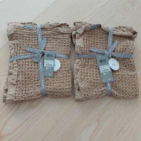 Lankojen lumo on tämän valmistanut käsityönä puuvillasta/pellavasta. Pehmeä ja imukykyinen.