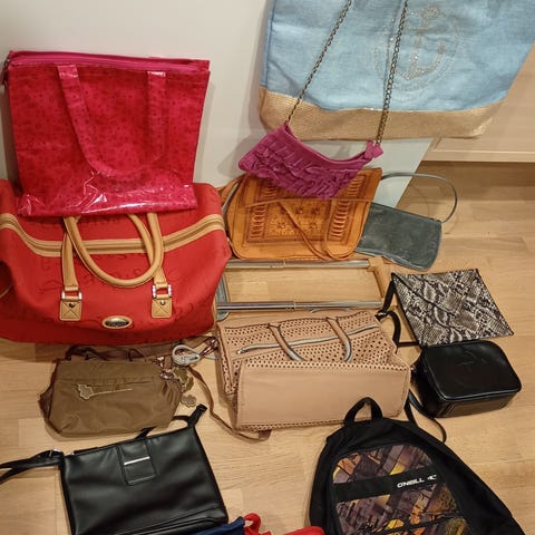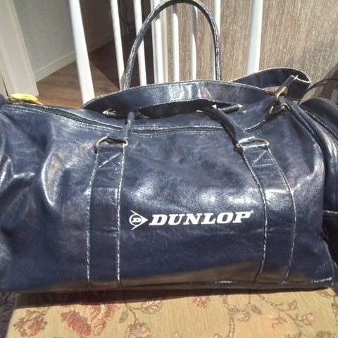 Kookas, olkahihnalla varustettu mainoskassit Dumle. Sivussa myös vetoketjutasku