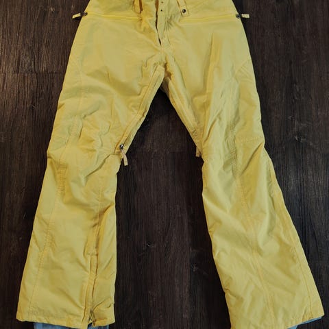Kaksi kautta käytetyt housut. Pientä kulumaa mutta pitää vettä ja vetoketjut ja lumilukot toimii. Koko on nuorten S.