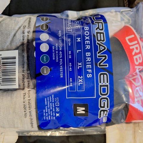Miesten housut, koko M, kirjava ruutukuvio. Materiaalina 95 % polyesteri ja 5 % elastaani.
