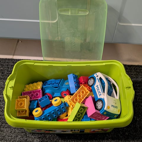 Legon kaltaisia palikoita laatikollinen. Laatikko EI tule mukana. Nouto rovastinkankaalta, koirakoti