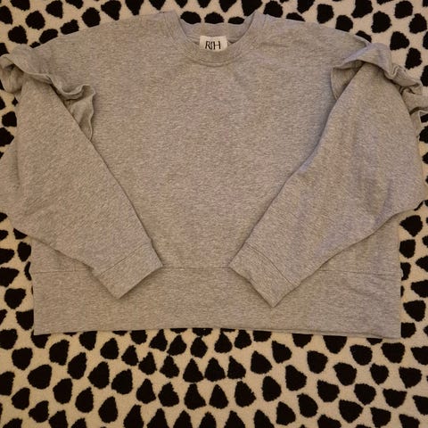 R/h merkin harmaa t-paita. Solmittava vyötäröltä. Isot hihansuut. Paidassa ei ole kokomerkintää eikä materiaalimerkintää, olisiko ollut joku sample sale ostos. Arvioisin kooksi 36 - 38. Kai kai 48 cm. Olka helma 57 cm.