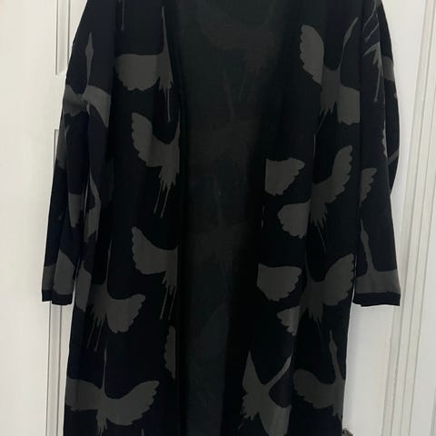 Myydään Yozen merkkinen neuletakki kuosilla cranes. Koko xs. Uusi ja käyttämätön, hintalaput paikoillaan. Itselle liian pieni