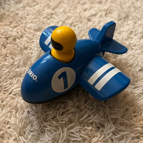 Hieno lentokonelelu, jossa valot, laskeutumisalustat, varikolle veto auto ja matkustajat + pelastusliivit.
