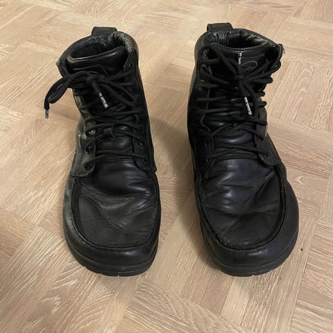 Hyväkuntoiset, vedenpitävät Lems barefoot Chelsea boot paljasjalkakengät. Väri tummanruskea, koko Us 11,5 vastaa n. 44 kokoa.