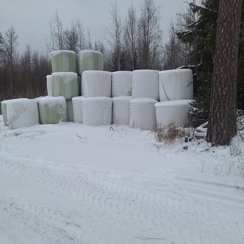 Myydään 2025 sadon esikuivattua heinää (ka n.75%). Muovia 10-12 kerrosta. Ei käytetty säilöntäaineita. Paalit painaa 350-400kg.