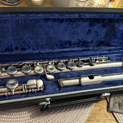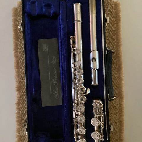 Trevor J. James cantabile poikkihuilu kotelolla, laukulla ja puhistusvälineillä